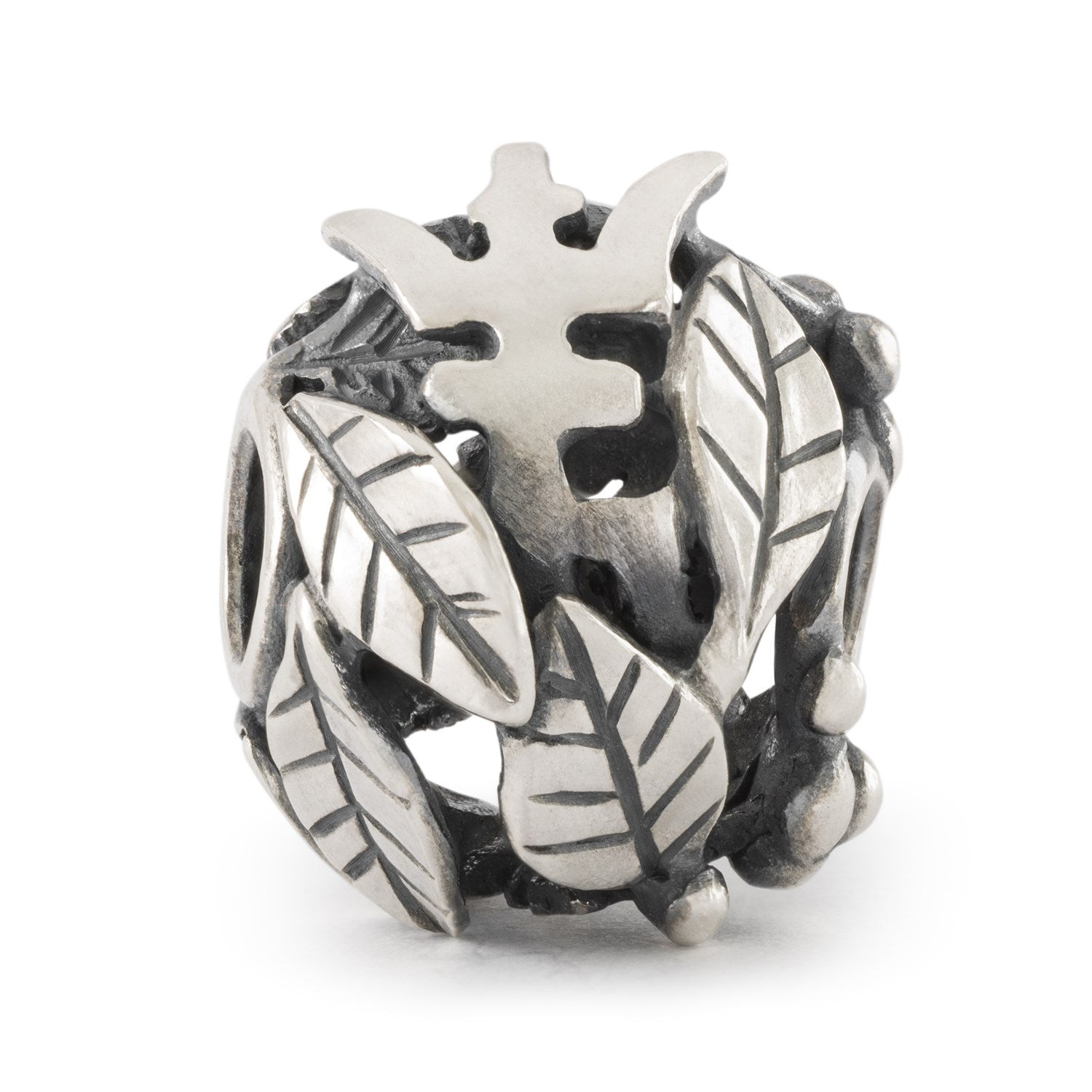 En sølvkugle med blade og et symbol inspireret af det kinesiske Shou-tegn for lang levetid.