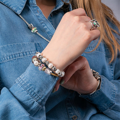 En af de bedste ting ved Trollbeads er muligheden for at sammensætte smykker, der afspejler din personlige historie. Lykkeknude-kuglen kan være midtpunktet i et armbånd, der symboliserer dine vigtigste relationer, dine stærkeste minder eller de værdier, du holder fast i.