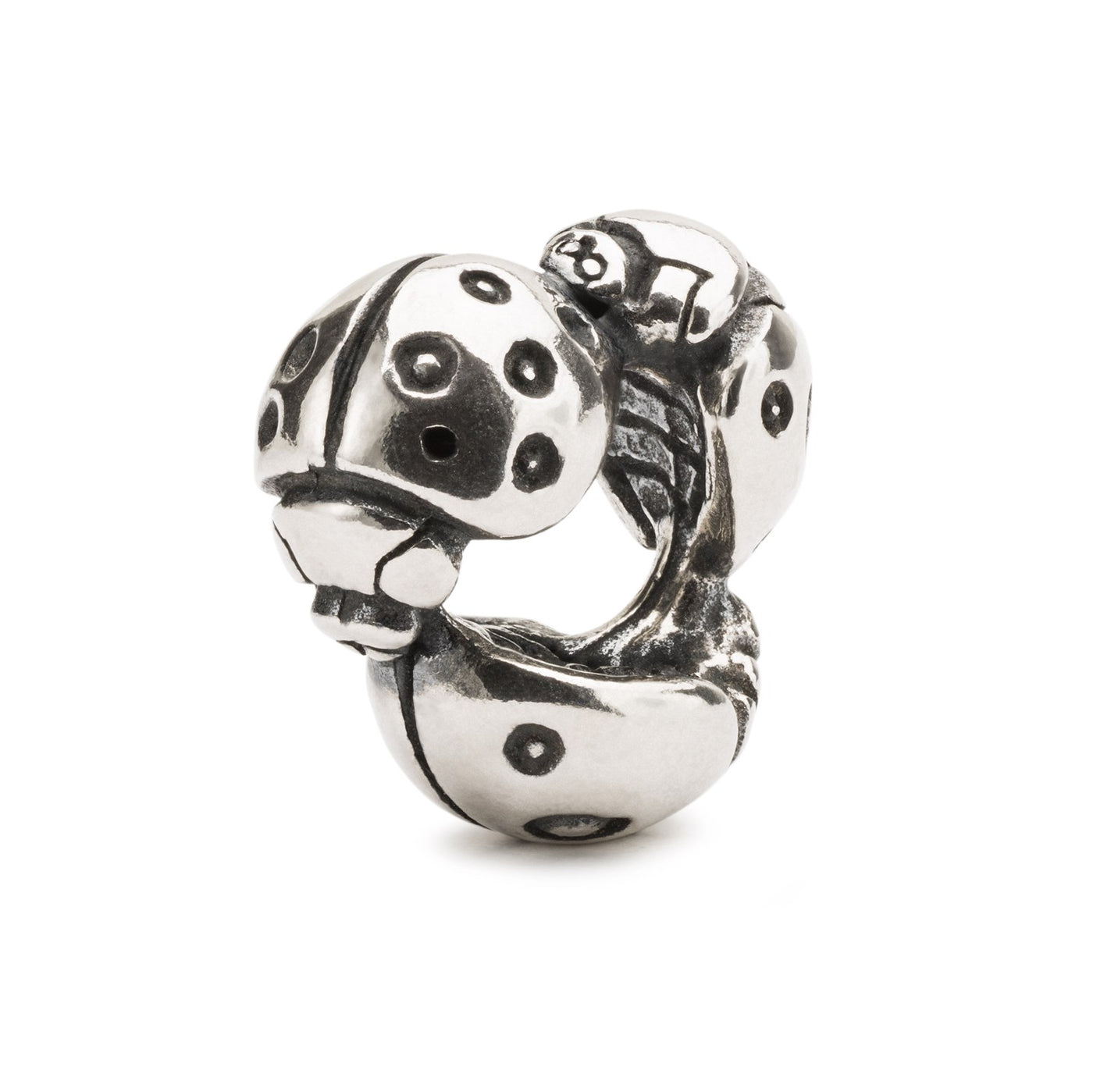 Three Ladybugs form a silver jewellery bead.