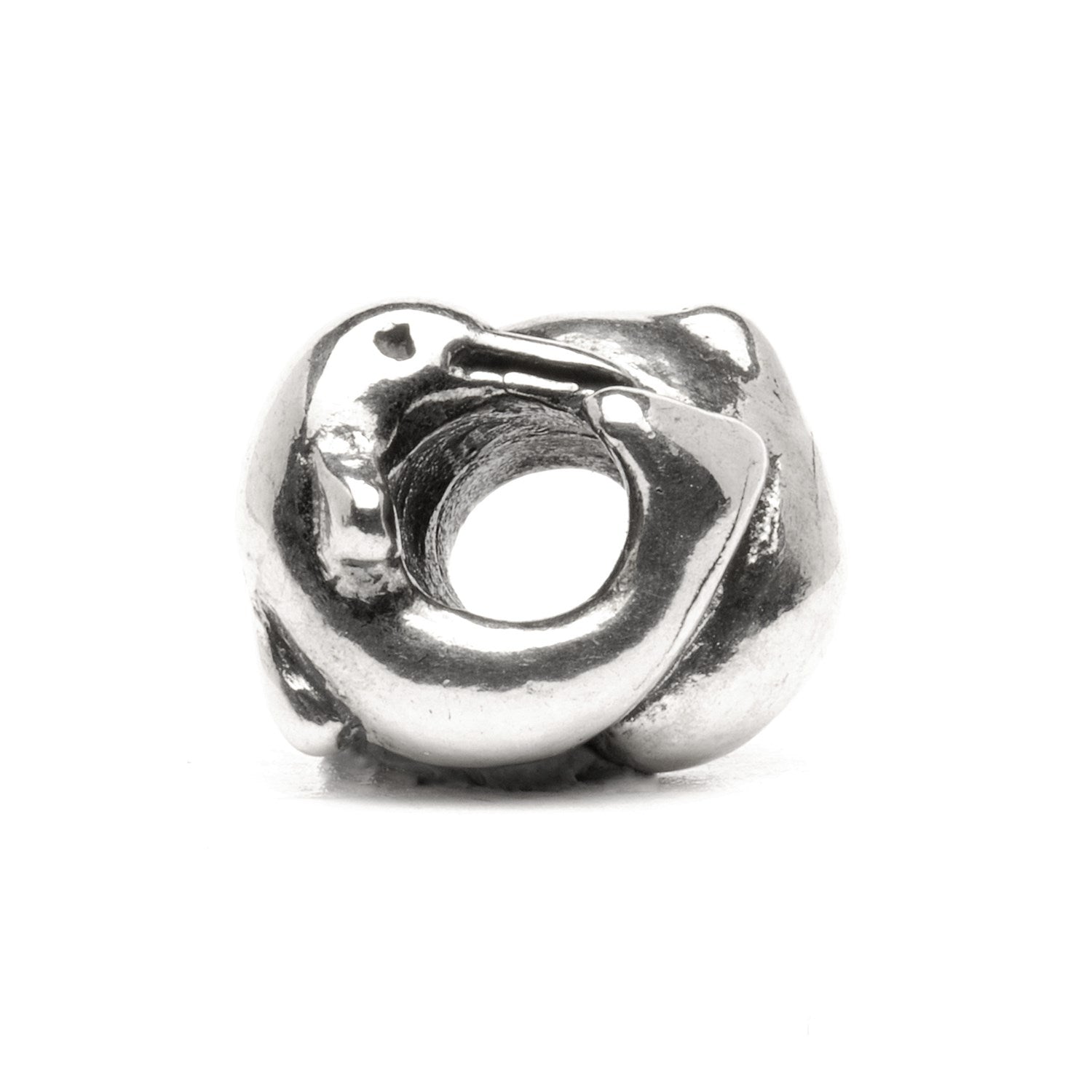 Som det heldige skib, der har delfiner dansende i stævnens brusende bølger, springer to delfiner omkring denne sølvkugle i forunderlig leg. Delfinen er et lykkedyr i mange kulturer.