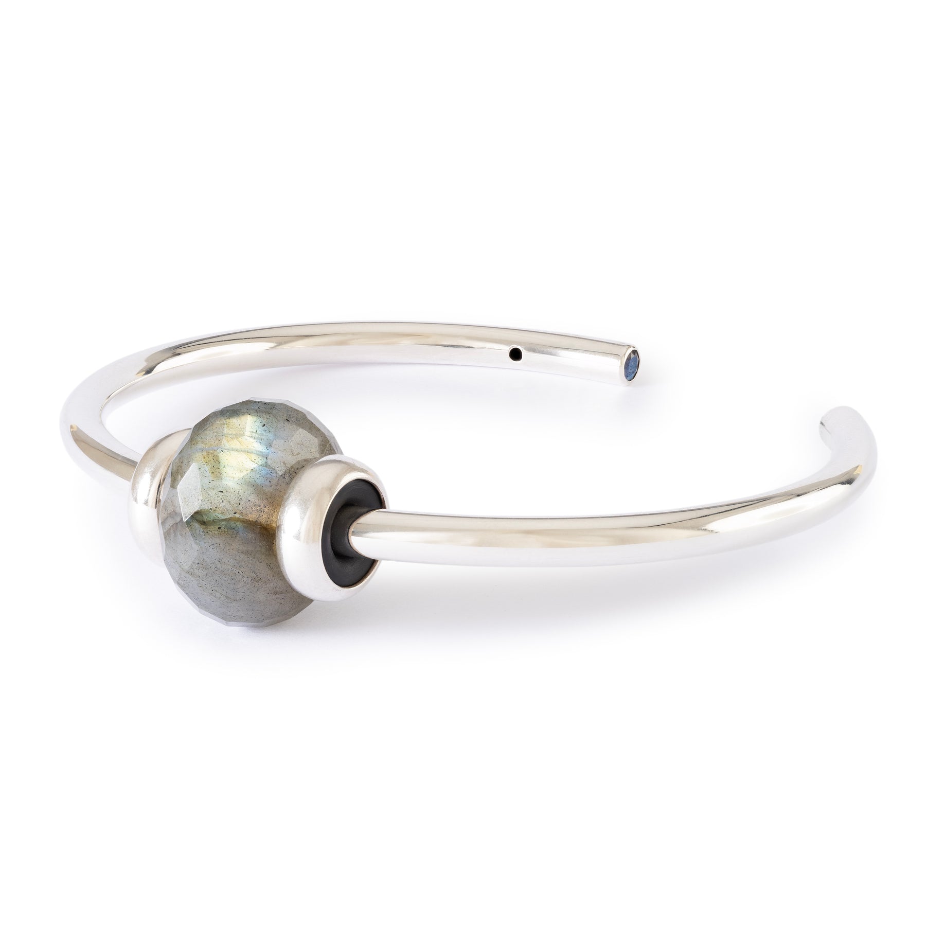 Dette eksklusive smykke kombinerer klassisk finesse med naturens egen magi. Den 18 karat forgyldte bangle prydes af to forgyldte spacers og den dragende ædelsten Labradorit, kendt for sit fortryllende farvespil og sin kraftfulde energi.