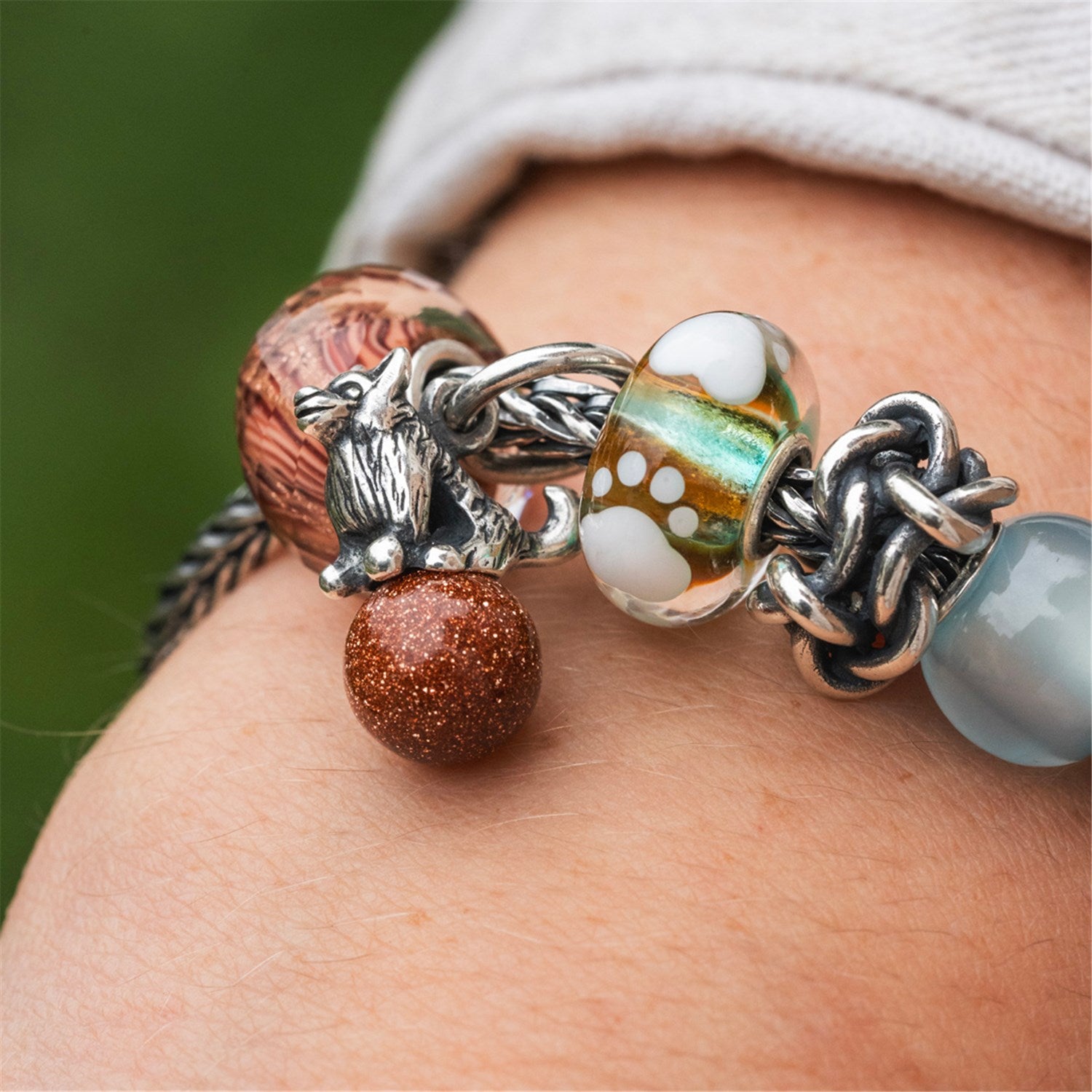 • Vær opmærksom på at følge vore størrelsesguide, når du skal vælge armbåndsstørrelse. Der skal tages højde for, at jo flere kugler der skal sidde på armbåndet, jo længere skal armbåndet være. Armbåndet skal sidde tæt, dog uden at tilføre for meget pres på låsen.