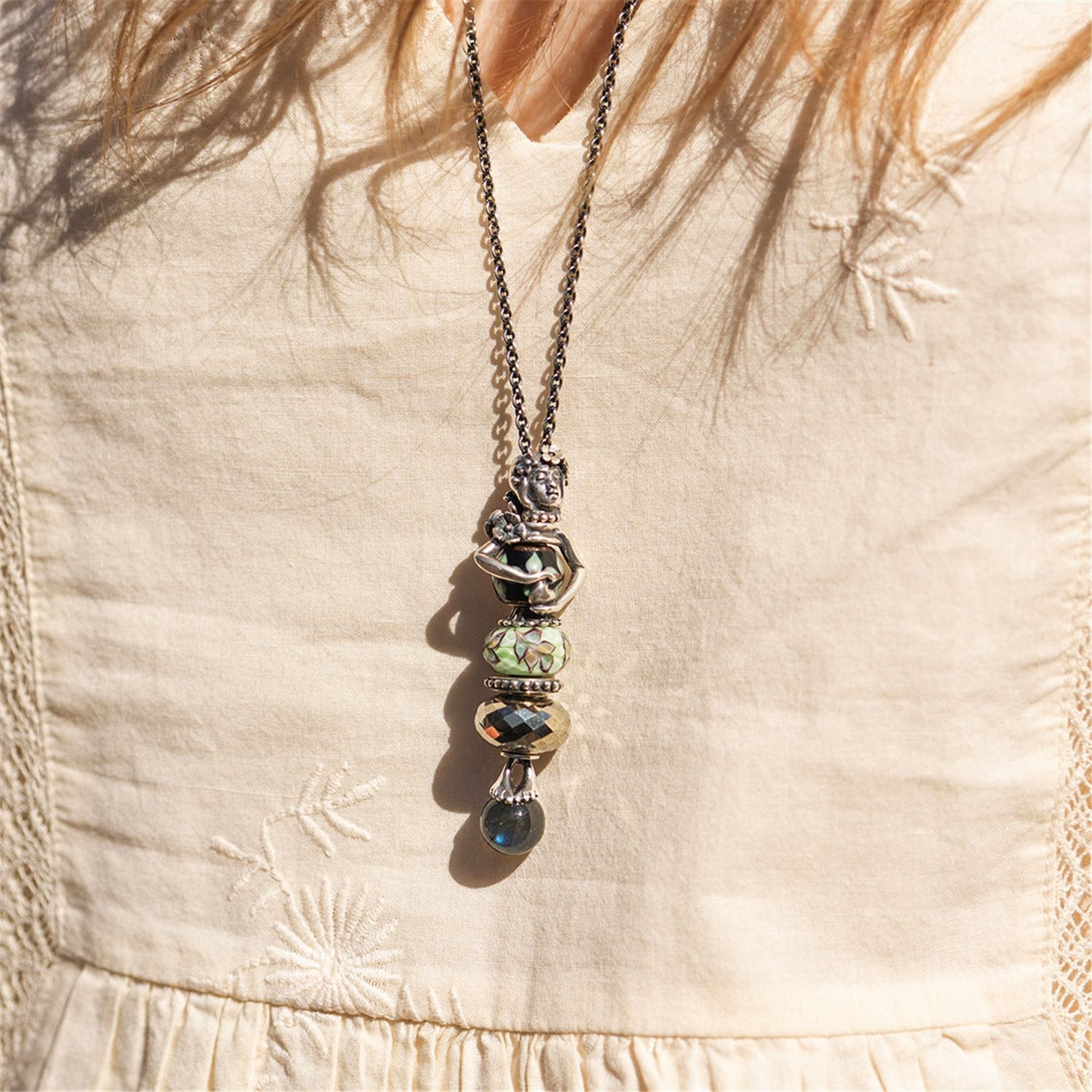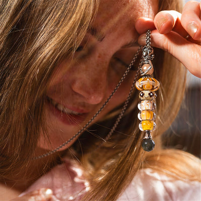 Udtryk dig selv ved at placere dine yndlingskugler i forskellige farver, størrelser og teksturer på den nederste del af halskæden. I hjertet af Kærlighedens Beskytter kan du have det sjovt med at udskifte de runde kugler i forskellige materialer eller farver.