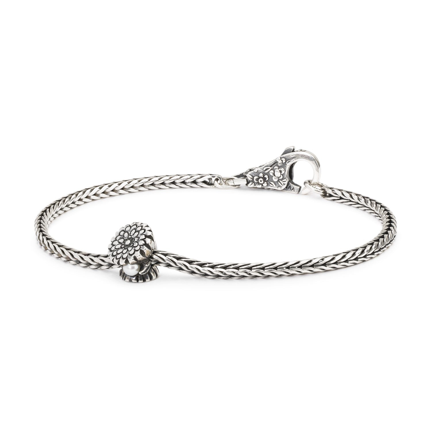 Et Sterling sølvarmbånd med den søde Oktober morgenfrue. Morgenfruen er håndlavet i Sterling sølv og gemmer på en ferskvandsperle som tegn på skønhed. Armbåndet bliver afsluttet med en Blondelås. En betænksom og eksklusiv gave til en fødselsdag eller særlig begivenhed i oktober.