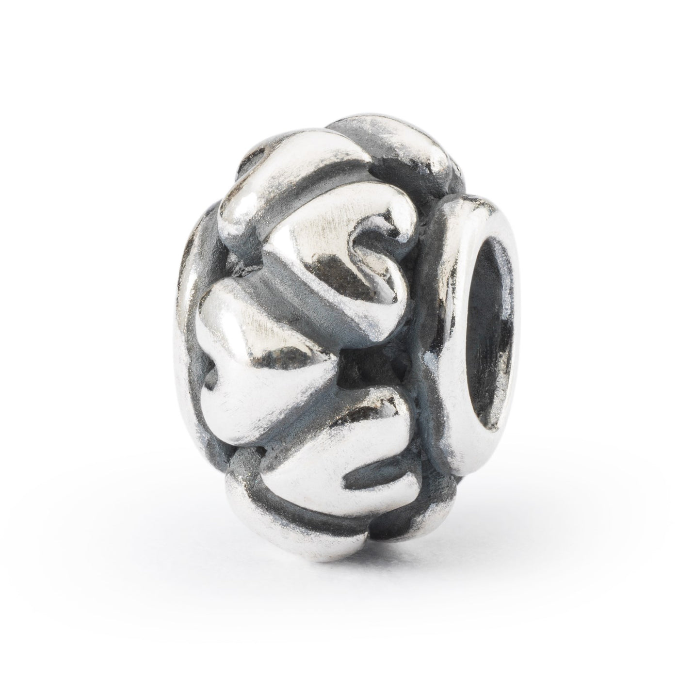 Denne sølvkugle prydes af en fin række små sølvhjerter.